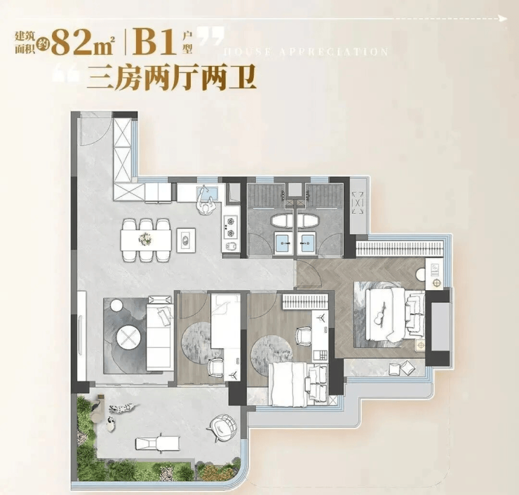 对于在珠江新城、琶洲等CBD工作的年轻家庭或改善型买家而言,这样的价格门槛配合140%的超高使用率,性价比极为突出。尤其82㎡户型,以不足230万起的总价,即可享受超百㎡的实际居住空间,堪称刚需上车的“神户型”。