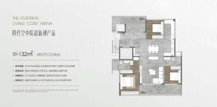 建面约143㎡四房两厅两卫:L形大开间无界宽厅连接南向超大阳台,6米挑高露台可打造空中花园,原价543.4万元,9折后总价489.06万元,叠加家电礼包(5万)+物业费补贴(9.6万),实际节省超65万元。
