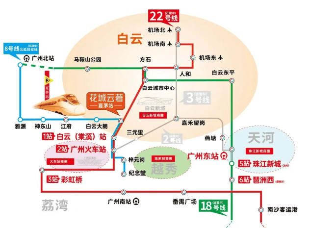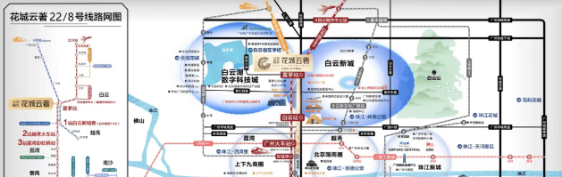 项目距离地铁22/8号线北延段支线夏茅站仅约50米,交通十分便捷。乘坐22号北延线可直达白云站、越秀、老荔湾等地,换乘18号线更可5站直达珠江新城(冼村)。此外,项目周边还有机场路、华南快速、机场高速等主要交通干线,方便居民自驾出行。