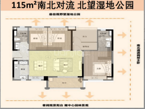 115㎡四房两厅两卫户型,为改善型家庭量身打造,四房格局适配多孩家庭与三代同堂居住需求。户型全南向设计,超大面宽保障采光效果,LDK一体化布局让空间更显开阔;主卧套房配备独立卫浴与全景飘窗,彰显居住品质;三间次卧空间灵活,可作为儿童房、老人房或书房;全屋飘窗赠送,进一步提升空间使用率,动线合理、功能齐全,兼顾实用性与舒适度,是改善家庭一步到位的优质选择。