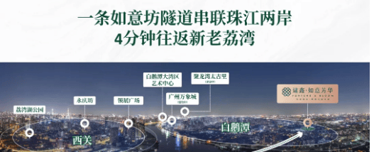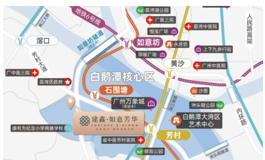 建鑫如意芳华择址荔湾白鹅潭核心区,地处白鹅潭与滘口板块中间,既能承接白鹅潭千亿发展红利,又能享受西关千年人文底蕴,地理位置得天独厚,是荔湾区重点发展的滨水人居板块。