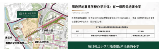 3. 问:项目周边教育资源怎么样?有哪些学校?答:项目周边教育资源丰富,社区内配建1所9班公立幼儿园(建设中),周边有康有为纪念小学、广州四中等多所公立学校,覆盖幼儿园到初中12年公立教育,学校距离近,师资优。