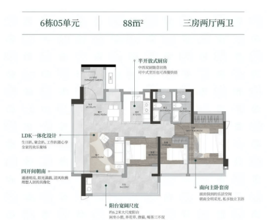 整体来看,所有户型均采用新规设计,使用率较高,无论面积大小都有入户花园,各个卧室也都有超大飘窗,兼顾实用性与舒适性,能够满足不同家庭的居住需求,购房者可根据自身家庭情况,选择合适的户型。