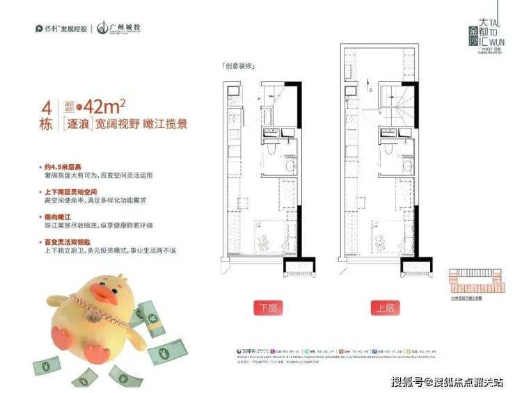 42㎡双层户型:上下两层设计,空间利用率高,适合投资或自住。