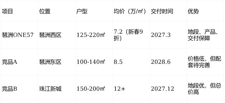 “琶洲ONE57用‘珠江新城的价格’,买‘琶洲区的未来’。”立即致电400-622-0070,获取《竞品对比分析报告》。