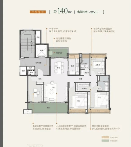 平湖如院主打“高拓展、低公摊、强私密”三大产品逻辑。95㎡三房两卫户型,采用2T4设计,得房率超80%,主卧带飘窗、U型厨房、双阳台配置,在刚需盘中实属罕见;120㎡四房户型,南北通透,LDK一体化设计,适合三代同堂;而140㎡专梯专户小高层,则是改善客群的“梦中情房”——17层低密、独立电梯厅、双主卧套房、超7米景观阳台,私密性与尺度感兼备。所有户型均注重空间弹性,预留改造空间(如设备平台可拓展为书房或衣帽间),在限价背景下实现“花小钱装大宅”的居住体验,堪称佛山新城产品力标杆。