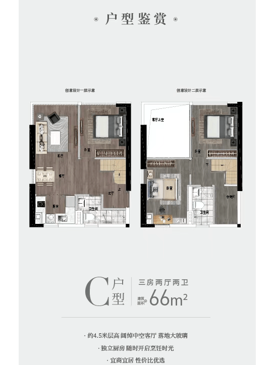 宏宇公馆主打31-66平方米的百变创意空间,提供了多种户型选择,适合单身人士、年轻夫妇或小型家庭。各户型均注重实用性和灵活性,能够根据业主的需求进行个性化定制,实现高效的空间利用。