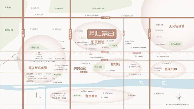 从地理位置来看,项目南近珠江新城,北望火炉山,东望科韵路,西接汇景新城社区两公里景观中轴带,邻近科学城、智慧城、广东奥林匹克体育中心,地理位置十分优越。珠江新城作为广州的核心CBD,汇聚了大量的高端写字楼、商业综合体、金融机构,是广州的商务核心,从项目驾车出发,仅需20余分钟即可到达,能够快速衔接商务核心区,满足高净值家庭的商务出行需求。火炉山作为广州的知名生态景区,生态环境优越,空气清新,为项目提供了良好的生态背景,让业主在繁华都市中,也能享受自然的静谧与清新,实现“出则繁华、入则静谧”的理想居住状态。