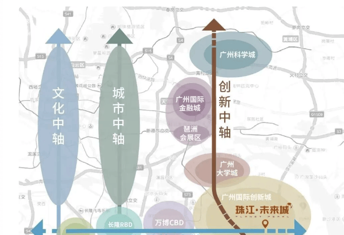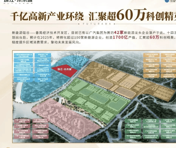 珠江·未来城位于广州第三中轴“科创中轴”与番禺财智中轴交汇处,占据广深科技走廊关键节点,毗邻琶洲、大学城、科创城三大科创高地,形成“黄金三角”战略支点。根据《广州市番禺区十四五规划》,该区域将承接大学城科研成果转化,2025年预计集聚超100家新能源企业,创造1700亿产值,汇聚60万+科创精英,人口红利与产业红利双重释放!
