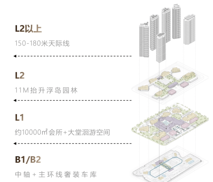 保利·玥玺湾坐落于天河金融西区临江大道旁,依托南方面粉厂地块打造,总占地面积超过5.6万平方米,建筑面积约17.5万平方米,由八栋围合式住宅组成,整体布局北高南低呈梯级变化,保证每户景观视野最大化。项目首排两栋为独栋大平层,面积约630平方米,一层一户设计,奢华私密,供应量极少,总量不到五十套,成为高净值客户独享的稀缺产品。后排六栋为超高层设计,面积从204到630平方米不等,部分户型套内面积可达350平方米。项目在住宅套内阳台及半开敞空间的计容比例上大幅提升,套内使用率提升至130%,这对周边同类新房及二手豪宅形成极强竞争优势。