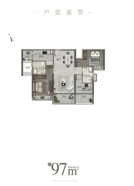33层地标建筑:推出97-128㎡三至四房,采用2梯3户舒适配置,户户南向,尽揽中心园林与山湖叠翠美景。