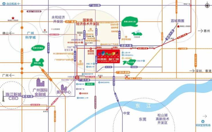 区位战略高地: 项目地处“广州东部中心”重要组团,是广州“东进”战略的直接受益区。不仅位于国家级增城经济技术开发区的辐射范围内,更扼守穗莞深黄金走廊的核心节点,享受城市发展与政策红利的双重加持。