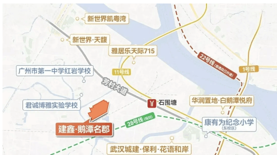 交通配套的通达性更是项目的核心优势之一。距离在建地铁11号线石围塘站仅800米左右,作为广州首条市区大环线,11号线串联天河、白云、越秀、海珠等中心五区,换乘站多达14个,可与广州现有及未来的所有地铁线路实现换乘,被誉为“换乘之王”,未来5站可达珠江新城,8站通达广州东站,轻松虹吸全广州的优质资源。自驾方面,项目紧邻芳村大道中,可快速接驳洲头咀隧道、内环路等交通动脉,30分钟内通达全城,未来如意坊二期高架道路建成后,出行将更加便捷。