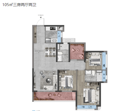 户型设计:105-220㎡多面积段,满足全生命周期居住需求