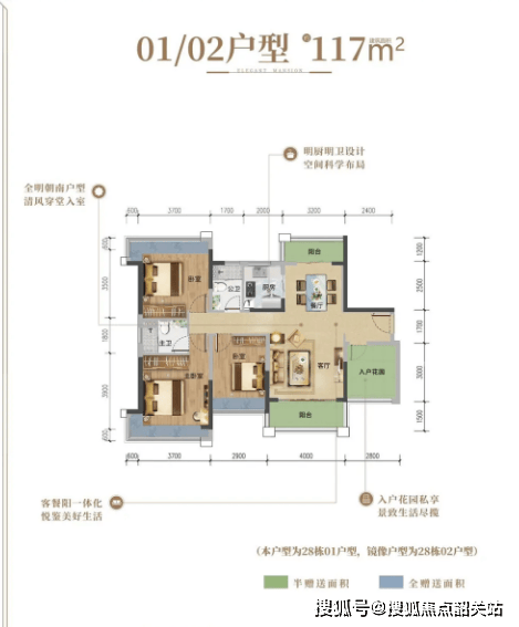 住宅在售户型面积段为95-172㎡,涵盖3房2厅2卫、4房2厅2卫两种户型,其中明星户型为95/98/109/118/127㎡,主打刚需三房与改善四房,户型设计遵循“南北通透、方正实用、动静分离”的原则,最大化利用空间,减少面积浪费,提升居住舒适度。