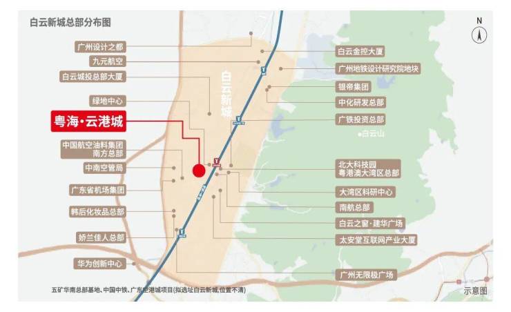 白云新城,东接珠江新城,西连白云山,北依机场高速,南临流溪河,拥有不可复制的地理天赋。然而,随着周边高端产业的聚集和人口的导入,区域对于高品质、大体量、全业态综合体的需求日益迫切。现有的居住产品往往难以满足高净值人群对于“工作、生活、休闲”无缝衔接的极致追求。正是在这样的背景下,粤海云港城应运而生。我们旨在打造一座集住宅、写字楼、商业、总部办公于一体的超级综合体,不仅填补了白云新城高端改善型产品的空白,更致力于成为白云 CBD 的封面地标。