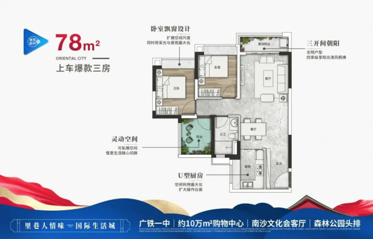南沙·十里方圆提供从78㎡至138㎡的全系三至四房产品,覆盖单身、新婚、三口之家到多代同堂的全生命周期居住需求: