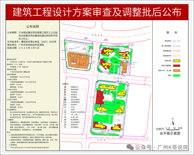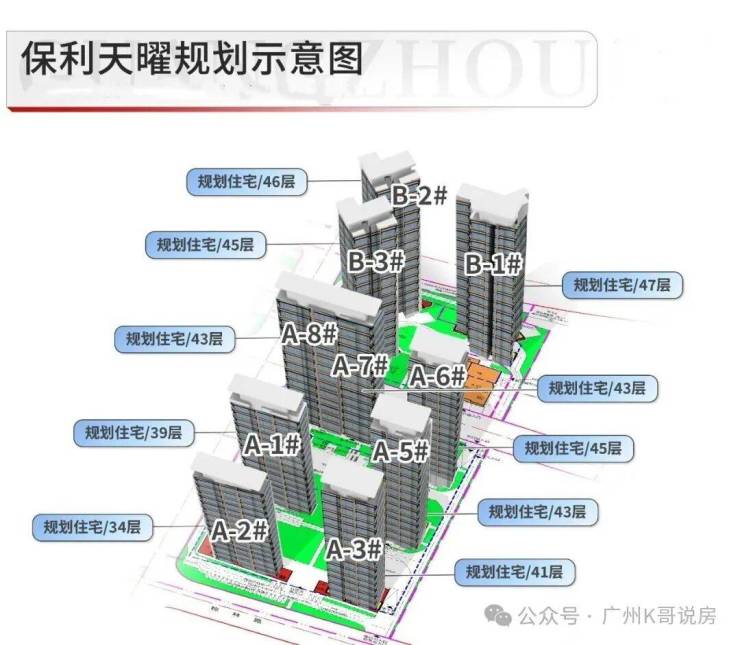 结合广州市自然资源规划局官方公示的规划总图与备案数据,保利天曜整体用地总面积约 41300㎡,总建筑面积约 124600㎡,整体分为南北两大独立地块开发建设,地块规划指标科学合理,兼顾社区密度、居住舒适度、采光通风与景观视野,全部数据均已完成官方备案,真实无误可随时核验。