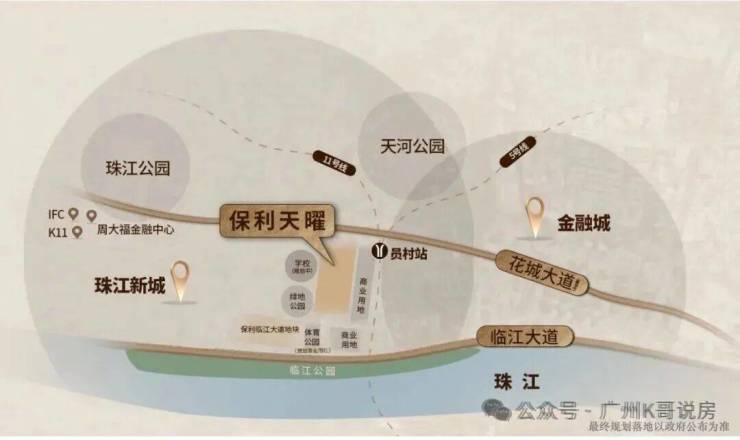 2024 年 12 月 31 日,保利以 70.2 亿元底价稳稳拿下天河员村绢麻厂双地块,也就是如今保利天曜的项目用地,两块地块分工明确,北侧 AT080720 地块楼面价达到 5.07 万 /㎡,南侧 AT080721 地块楼面价 5.11 万 /㎡,高昂的拿地成本,也直接奠定了项目高端改善的产品定位。除此之外,保利此前还斥资超 100 亿元拿下南方面粉厂地块,又以近 60 亿元竞得琶洲三宗优质地块,连片化、规模化布局天河滨江、金融城、琶洲三大黄金板块,板块联动发展,区域价值持续叠加升级。