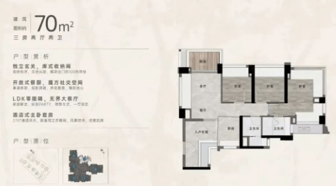 75㎡三房一卫:紧凑实用,适合小家庭居住。