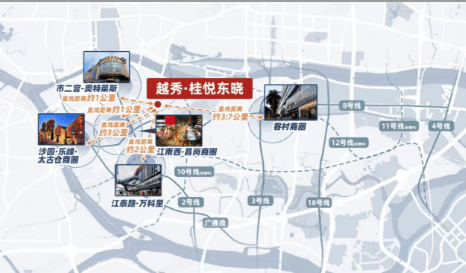 越秀·桂悦东晓坐拥海珠主城成熟全维商业配套,覆盖日常购物、餐饮休闲、文化娱乐、医疗健康等全场景生活需求,真正实现出则繁华、入则宁静的理想居住状态。项目步行可达江南西商圈、滨江路商圈等五大成熟商圈,周边汇聚特色餐饮、品牌商超、生活服务等多元业态,日常采购、休闲娱乐、家庭聚餐均可便捷满足。同时项目周边分布五大书香艺术打卡点,文化氛围浓厚,兼顾生活实用性与精神文化需求。
