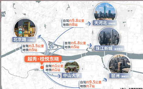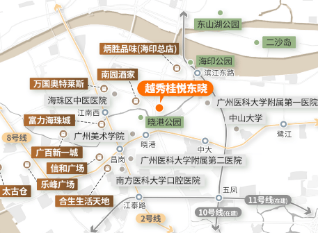 越秀·桂悦东晓构建轨道、主干道、公共交通三位一体立体交通网络,出行高效便捷,快速衔接广州主城各大核心板块,交通通达性位居海珠前列。轨道交通方面,项目近邻三条地铁线路,8号线晓港站步行约8分钟可达,2号线江南西站、10号线滨江东路站均在便捷辐射范围内,地铁出行可快速直达天河、越秀、琶洲等核心区域,通勤效率显著提升。