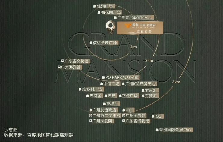 周边生活指南:项目1公里内有华润万家、盒马鲜生、天河区妇幼保健院,3公里内有天河城、正佳广场、太古汇,生活便利度远超郊区大盘。
