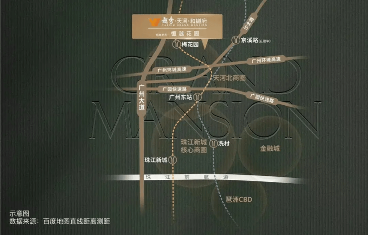 广园快速路+广州大道:自驾10分钟到天河城,15分钟到太古汇;