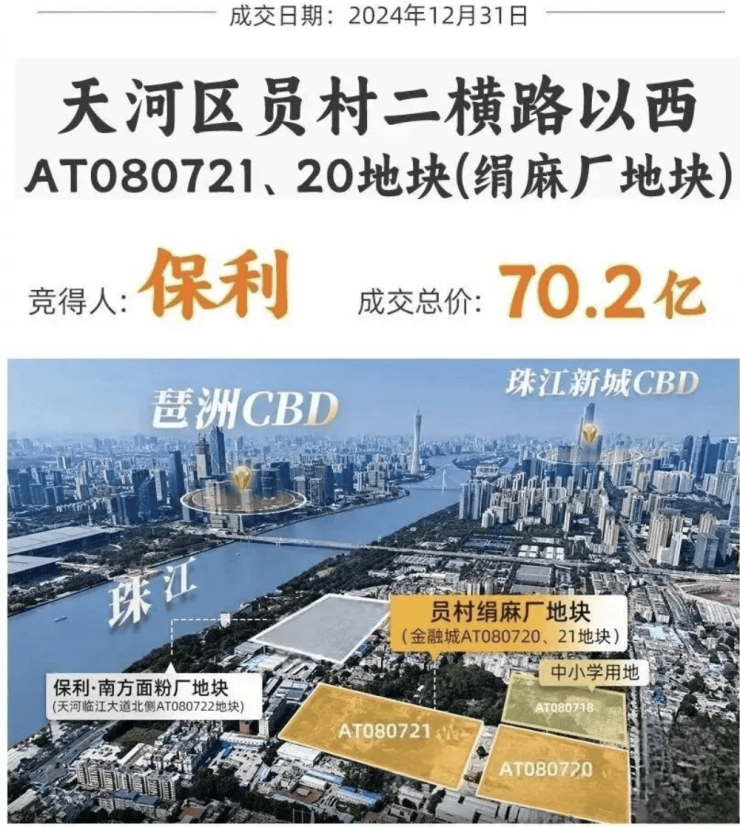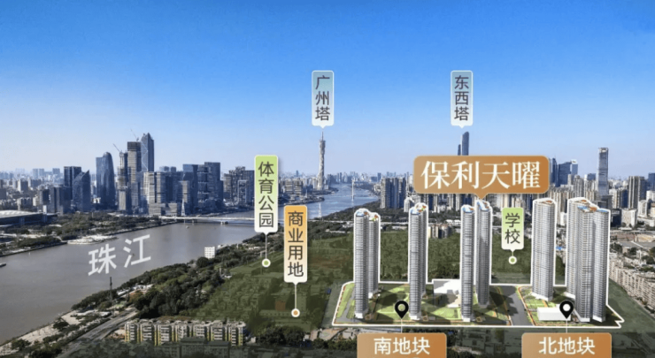 保利天曜由保利发展控股集团开发,作为世界 500 强企业(2024 年排名第 172 位),保利深耕广州多年,2024 年在穗土地储备投入近 300 亿元,客户满意度连续 5 年高于行业均值,高端项目交付兑现率达 98%,远超行业平均水平(75%)。项目土地背景雄厚,2024 年 12 月 31 日保利以 70.2 亿元底价竞得员村绢麻厂 AT080720、AT080721 双地块,楼面价分别达 5.07 万元 /㎡、5.11 万元 /㎡,属金融城西区二线江景宅地,战略意义突出。