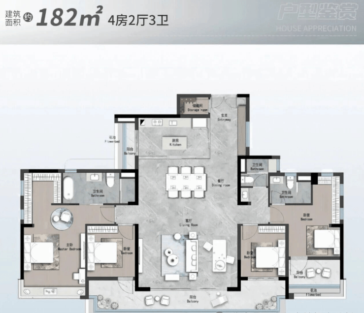 142㎡四房两厅三卫:改善标杆,品质生活升级之选