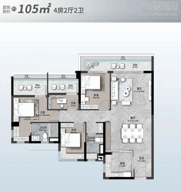 103㎡四房两厅两卫:刚改优选,二胎家庭适配款