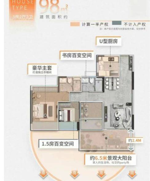 高得房率:作为新规后的产品,使用率达 100%,相比同产权面积的旧规房子,空间更为宽敞。售楼处电话:4009909752。