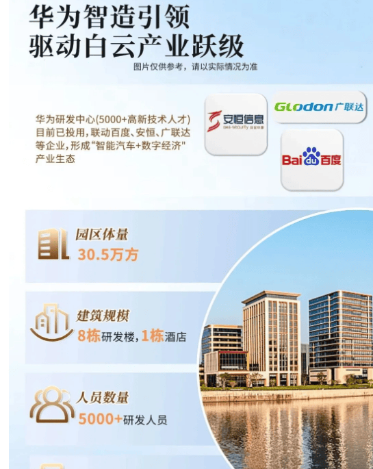 产业布局方面,板块的发展速度与格局远超外界想象。自2020年华为宣布在白云区落地后,百度、安恒、广联达等一批科技企业相继进驻,4年多来已带动白云区集聚软件与信息服务类企业约1.4万家,相关产业规模突破百亿元。2025年2月,华为广州研发中心正式启用,将有超过5000名研发人员陆续入驻,为区域发展注入强劲动力。