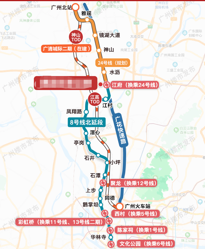 双地铁:地铁9号线(已开通)花都汽车城站约800米,地铁24号线(规划中,从白云湖至广州北站)