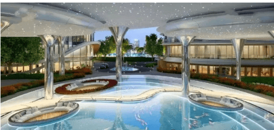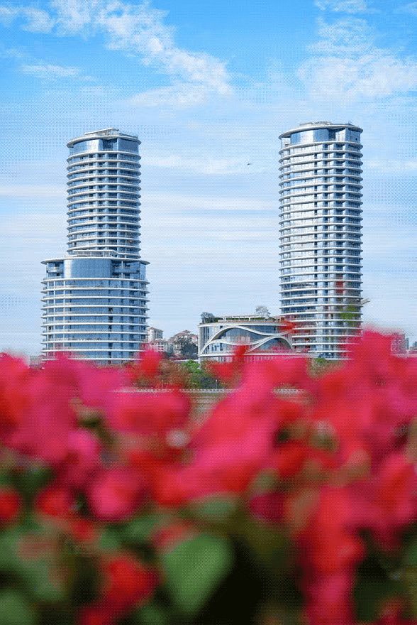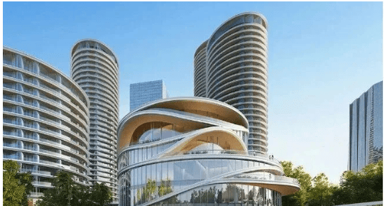 具体工程进度如下:T3栋已实现封顶,该楼栋总高32层,目前内部装修筹备工作已启动,后续将严格按照顶级豪宅标准进行施工;T3左侧的T2栋同样总高32层,当前主体结构已施工至顶层,封顶在即,各项建设工序有序衔接;T1栋总高12层,主体结构已全部完工,正在进行外立面装修及内部配套设施安装,预计将率先完成交付准备工作;T4栋艺术文化中心总高4-5层,主体结构已封顶,正在进行内部功能区域划分与装修,未来将承载音乐表演、艺术展览、室内竞技等多功能业态;北区的T5栋(52层)和T6栋(59层)主体结构已施工至中高层,建设进度符合预期,顶奢酒店配套区域的规划设计已进入收尾阶段,将同步完成建设与装修工作。