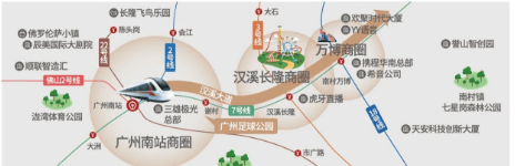 交通的便捷性,决定了城央生活的效率。广州足球公园构建了“地铁+城轨+城市主干道”的立体交通网络,实现半小时直达万博CBD与珠江新城CBD。项目紧邻地铁7号线谢村站(约300米),2站可达广州南站、3站可达万博CBD;换乘22号线,4站可达珠江新城;同时,广州南站汇聚14轨交汇,包括广深港高铁、广珠城际、佛莞城际等,1小时可达大湾区核心城市。此外,汉溪大道(在建)、南大干线环绕项目,一脚油门即可直达万博、长隆等商圈,半小时生活圈覆盖全城。这种“双地铁+14轨交汇+双快速路”的交通格局,让广州足球公园成为名副其实的“湾区交通枢纽”,无论日常通勤还是周末出行,都能高效便捷。
