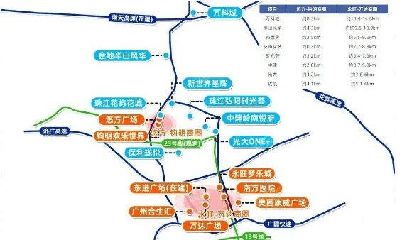 自驾出行同样便捷,项目周边环绕花莞高速、增天高速(在建)、济广高速等主干道,通过新新大道可快速接入高速路网,从项目出发,经花莞高速 30 分钟直达黄埔科学城,40 分钟抵达天河 CBD,经增天高速(建成后)可进一步缩短通勤时间,日常通勤与跨区出行均无压力,多维交通方式为业主提供灵活选择。