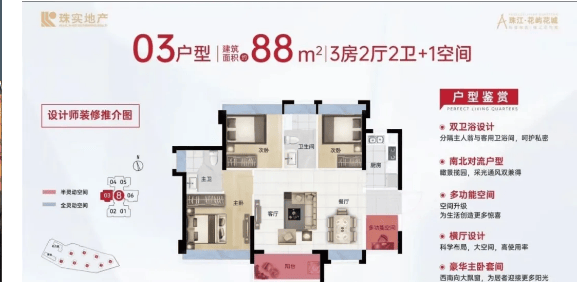项目户型设计以 “刚需友好 + 高实用性” 为核心,主打 78-96㎡三至四房,其中 78㎡三房两卫总价仅 70 万左右,堪称 “刚需神户型”。78㎡户型采用 N+1 设计,实现 “小三房 + 双卫” 配置,主卧带独立卫浴,满足多人口家庭日常使用,避免早高峰卫浴拥堵,全屋飘窗设计增加空间通透感,90% 的实用率让实际使用面积媲美同类 85㎡户型,首付 10 万左右即可入手,轻松降低上车门槛。