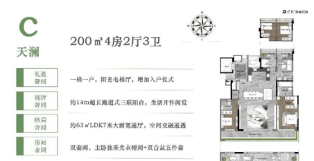 独梯独户设计:保障了住户的私密性,提升了居住品质。