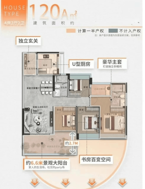 作为2023年12月拿地、2024年7月首开的全新规住宅项目,花语上城充分受益于广州最新住宅设计政策,实现高达100%的得房率。这意味着,同样是98㎡的产权面积,花语上城的实际使用空间远超传统楼盘,相当于多出一个功能房间的实用面积,极大提升居住舒适度与性价比。