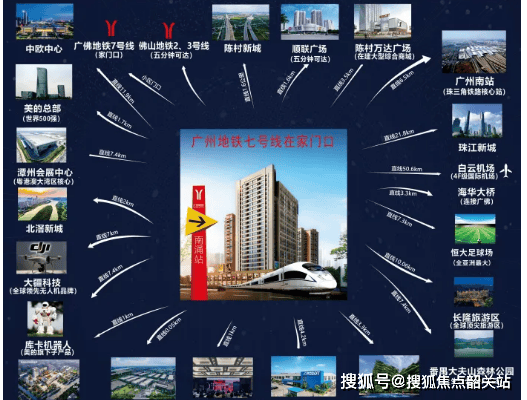 项目具体位置位于佛山市顺德区陈村南涌芸香围105国道18号,紧邻广佛地铁7号线南涌站A出口,直线距离仅5米左右,真正的地铁上盖楼盘,下楼即达地铁站,无需奔波,极大节省通勤时间。地铁7号线贯通广佛,5站即可直达广州南站,8站可达长隆旅游度假区,直达珠江新城核心商圈,轻松实现广州上班、佛山居住的便捷生活。