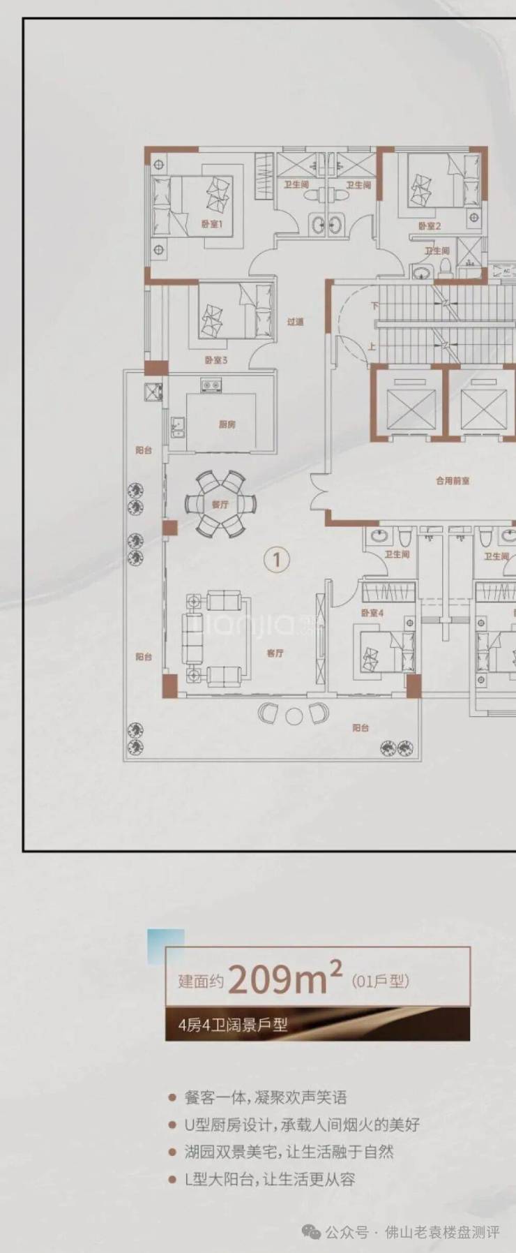 顶改主力:175-209㎡四房两厅三卫/四卫,专梯专户,奢阔方厅。