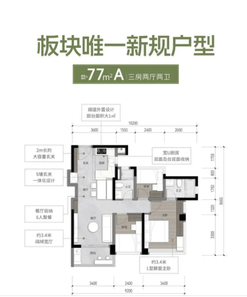 🏠 77A/B㎡三房两厅两卫(刚需首选):东南向设计,采光充足;77A㎡约 3.4 米开间客厅,3.4 米 L 型飘窗主卧,拓展使用空间;77B㎡270° 观景套卧(主开间约 3.1 米),视野开阔;总价约 280-300 万,首付 42 万起(按首套 15% 计算),适合新婚小夫妻或三口之家,剩余房源 15 套(A8 栋占 8 套)。