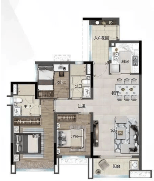 101㎡三房两厅:格局方正,南向阳台连通客厅,主卧带飘窗,适合三口之家;