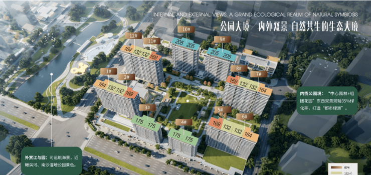 在社区内部,项目采用了围合式布局,打造了“中心园林+组团花园”的双景观轴。绿化率高达35%,这意味着社区内大部分土地都留给了花草树木。园林设计融合了现代滨海风情,通过多层次的植被搭配,营造出“都市绿洲”的氛围。特别是项目首创的“下沉式庭院会所”,将恒温泳池、阳光健身房等高端设施融入园林之中,让运动和健康成为生活的一部分。