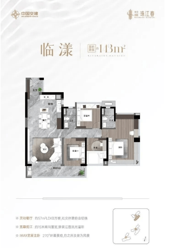 目前在售户型丰富多样,从紧凑实用的89平方米两房到宽敞豪华的181平方米四房均有涵盖。其中,130平方米和143平方米户型设计尤为出色,分别提供了背山面江的惬意生活和270度IMAX奢华瞰江体验;而180平方米户型则专梯入户,确保住户的私密性和尊贵感。这些精心设计的户型无疑提升了项目的吸引力,对于追求高品质生活的购房者来说具有很强的诱惑力。