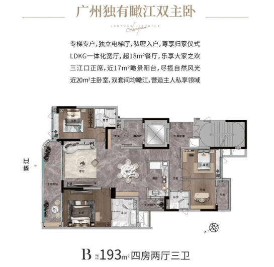 兰园·江悦提供了一系列精心设计的户型选择,所有户型均采用一梯一户的设计理念,保证了住户的隐私性和舒适度。主要户型包括: