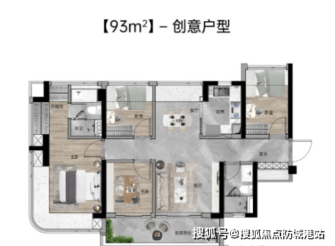 💬 80㎡户型为三房两厅两卫设计,亮点突出:一是全东南向,四开间南向,12.6 米超大面宽,采光通风极佳;二是高使用率 107%,实际使用面积 85.6㎡,配备独立入户玄关与观景阳台;三是功能齐全,双卫生间设计满足多人口家庭需求,主卧 270° 弧形玻璃幕窗,享山景视野。该户型适合天河智慧城、龙洞一带年轻夫妻、三口之家,既能满足自住需求,又能享受华阳学区资源,未来保值增值潜力大。