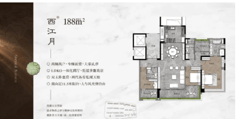 精装准现楼交付(2025 年 8 月起),减少等待周期,品质所见即所得;户型覆盖 107-268㎡全改善面积段,专梯入户、双主套等设计满足高端家庭多元化需求。