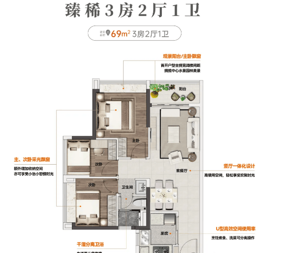 主打 69-110㎡三至五房,实用率高达 93%,远超区域平均水平。85㎡做到 4 房 2 卫,东南向望园林泳池;89㎡独立单边位南北对流,比周边同面积户型多一房且价格更低;110㎡五房设计,能省出约 200 万购房成本,完美适配三胎或三代同堂家庭。所有户型均实现过道零浪费,飘窗与收纳空间优化升级。